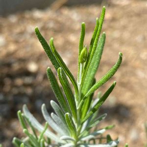 ラベンダーのコンパクタです😀 我が家にラベンダーは3種類あるのですが、名前通りこの子は他より葉っぱも株の背丈も小さいんです。冬のからっ風でダメージを受けていたけど、今日よーく見ていたら、新芽の間に蕾らしきものがっ❗️ 植えて2年目になって、今年は咲いてくれるかな😚