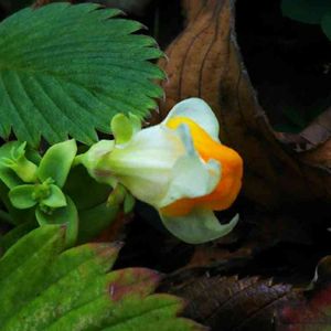 ウンラン オオバコ科ウンラン属 海岸に生育する植物で、花の形が独特。 横顔を見るとおでこが飛び出てる感じがする。