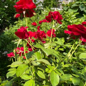 💠バラ💠 🌹ニコロバガニーニ🌹 庭に地植えのバラはそのまま咲かせています。 周りの緑に真っ赤な色が映えます💖 マイガーデン 🏷日曜日はバラよ❤️ 🏷ビューティフルサンデー に参加させていただきます💕