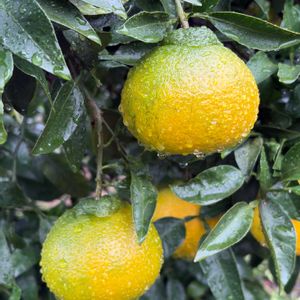 今日は一日雨降りでした☔️ 少しずつ色づき始めた不知火(デコポン)も、寒そうにしていました。お隣さんちのですけど〜🤣 2024・11・1🤳