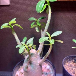 アデニウム アラビカム ずっと長い間育成ライトなしで室内管理だった子です! 真ん中が徒長しすぎていて、2週間くらい前に強剪定しました! 不安だったがカッターでスパッと! しばらく乾燥させて様子見していたら新芽がどんどん出てきました! いまはLED育成なので、花は咲かずとも太ればいいな、と愛でていきます😊
