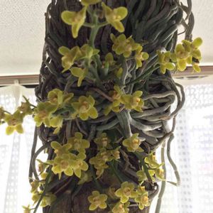 ヒドノフィツム ペランガスツム 閉店する園芸店からの救済株。 店内ではただの枯れた訳わからん植物で扱われてたけど、今は元気いっぱいで何より。 連れ帰ってから1週間様子を見てから、メネデール希釈液で根っこ療養。 24時間!で根っこの動きが明らかに活発になってきたので、梅雨を逃すまい!と少々強引にマウント。 ブヨっとしていた下茎部分がプリプリになって何ともまあかわいくなった!!