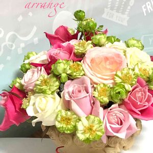 💚birthday アレンジ💚 明日、花友に渡すためのアレンジを いつだったか作った鉢にバラonlyで 作ってみたよ(^^) これなら、花が終わっても鉢は、 多肉サンに使えるから•*¨*•.¸¸♬︎