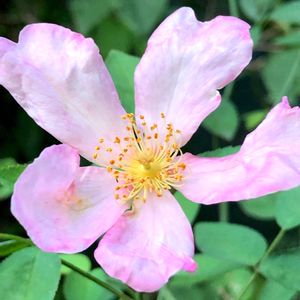 💚今朝、透き通る花びら💚 一重咲きのムタビリス、このうすいピンクが夕方頃には、濃いピンクに色変わりし まるで違うバラのように変身します🥀 つぼみの時は、オレンジがかった色なのに 咲くとうすいピンクそして夕方には、濃いピンクと。変化が楽しい🥀バラです 北国でも元気でつぼみをいっぱいつけてくれます。