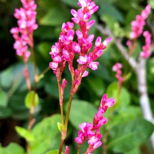 💚藍の花💚 藍染の原料と言われるタデ科の藍🌸 毎年、こぼれタネから、色々な所に 登場です(^^) タデと間違えそうです。 藍染の藍からは、想像出来ない花の色です 一輪挿しに飾るとちょい趣ありです😊