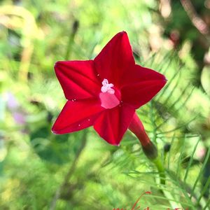 💚まだ(^^)元気です💚 真紅で小さな花 ルコー草 秋も日に日に深まり、小春日和と呼べそうな お日様と風🌿 タネも出来ていますがツルを伸ばした先には、まだまだ、つぼみと咲いているルコー草🌿