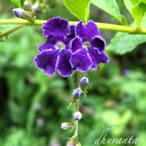 💚デュランタ 宝塚💚 キリッとした出で立ちが袴姿のタカラジェンヌを想起させることから付けられた名前だそうで。 我が家のは、昨日あたりから、咲いてきました。濃い紫色です。 昨日も今日も気温は、26度くらい 雨模様ですが。朝仕事前に撮りました(^^)