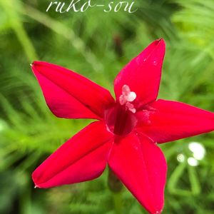 💚赤い星✨咲いた~💚 昨日、つぼみだったルコーソウ 瞬く間にもう、開いて赤い星のように 鮮やかにミドリのワサワサの葉っぱの中で 何輪も咲いています。つぼみもいっぱい(^^)