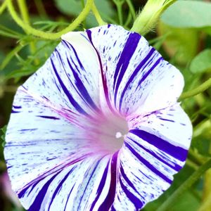 💚今日の朝の顔💚 毎日、ちがう模様を見せてくれる 朝顔 八房(^^) シマシマが全くないうす〜いピンクの咲く時もあります😊