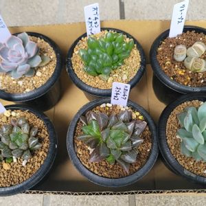 こんにちは〜 連投失礼します。 先ほどご紹介した、タチカワバナナさんでの戦利品です。 奥がキャロライン 手前がバイキング苗で買った4つ。 アメイジンググレイス、アルバビューティー、ポセイドン、あと名前を控えるのを忘れた子です💦 私はよっぽど気に入らないとエケベリア、特に韓国苗は買わないのですが(育てる場所がないし、高い苗はデリケートなので…)キャロラインは可愛かったですね〜。 キャロラインはさっそくお一人様で植え替えたので次に投稿します。 バイキング苗のほうは寄植え用なので、小ぶりでまるっとした感じの物を選んできました。