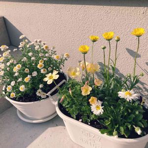 今日は少し風が強かったですが、いい天気で暖かかったです😊 花かんざしはたくさん咲いたらドライフラワーにしたいなぁ💕 右の寄せ植えは1つ50円の無人販売で買ってきたので名前は分かりませんが、春らしいかわいい花です🌼