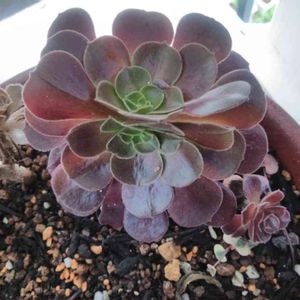 成長点が2つになったカシミヤバイオレット 休眠期と言われるアエオニウムですが、順調に大きくなっています🤗 お隣のまだら黒法師はギュッとなってお休み中😴