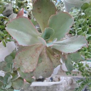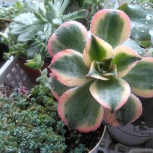 7月にしては寒い日が続いています🥶 アエオニウムのサンバースト なかなか大きくならないけどいつでもピンクの縁がかわいいです🥰 寝てるのかなぁ😴🤔