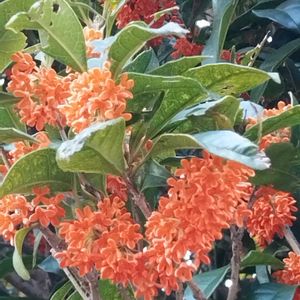 🍀🌻🪴💐🌹🌻🍀 🍀🧡キンモクセイ(金木犀)🧡🍀 💐キンモクセイ(金木犀)の花言葉は (謙虚) (謙遜) (気高い人) (真実) (真 実の愛) (初恋) (陶酔)などです 💐キンモクセイはモクセイ科モクセ イ属の被子植物(双子葉類)、常緑 小高木で原産地は中国南部です 💐キンモクセイは、小さなオレンジ の花からは想像できないほど強く 魅惑的な香りが特徴で、秋になる とオレンジの小花が沢山咲きます 💐キンモクセイは香りの強い花をつ ける3種類の樹木、三大香木(さん だいこうぼく)の一つです 💐金木犀は和名で、原種となった銀 木犀が白い小さな花をつけるのに 対し、鮮やかなオレンジの花をつ けることが由来となり、(金木犀) と呼ばれるようになりました 🍀🌻🪴💐🌹🌻🍀