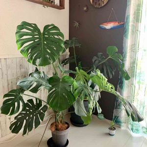 おはようございます☀ 久しぶりにモンステラ デカいなぁー😂 二つ目の鉢もそろそろサイズUPして植え替えないと底から根がでてる。 鉢をサイズUPするとまたモンステラが巨大化する🤦♂️🤦♂️🤦♂️ もう1畳分くらい場所取りそう😅