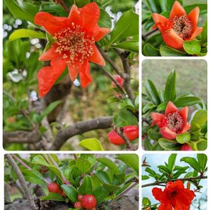『 ザクロ 』 〜今日のお花〜 久しぶりに見に行ったら 果実が... 美容と健康に良いとされています♡ 品種により 八重咲き 師匠咲きがあり 見た事はありませんが 花色も 白色 黄色とあるそうです。