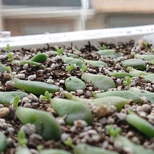 葉挿しの姫秋麗のかわいい芽たち。 こんな風にきちんと並べてみたのは初めて(*´▽`)一斉に顔をあげてかわいいな🎵 もやしっこにしがちなのできをつけよう😅