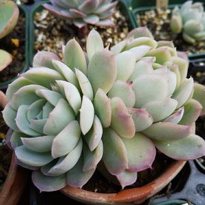 姫秋麗と姫秋麗錦 お気に入りだから 倍増計画(*´艸`*)💕 植え替えでポロポロ落ちた葉 仕立て直しで残った葉 ぜ〜んぶ葉挿しへ ちっちゃい子がいっぱいだよ もう、可愛いから 朝晩見ちゃう|・ω・`)😀
