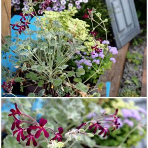 ゼラニウム4種🌸🌿 ↖↙は友達が挿し木た苗を昨年頂き、初開花です✨💖 アイビーゼラニウムは久々に育てます。 ↗2年目の星型ゼラニウム やっと咲いて来ました♪ ↘何度か投稿している3年目のバラ咲きゼラニウム・エンゼルブーケ💐