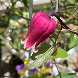 おはようございます😄 今日も 良い天気☀️ クレマチス 天使の首飾り** 2019年9月に3号ポットでお迎えしました➰ 可愛いなぁ~( ´∀` )b 《品種説明》 ヴィオルナ系 学名:Clematis 'Tenshi-no-kubikazari' ・作出国:日本 ・作出者:杉本 公造 花の外側が濃紫ピンク色の壺型 新枝咲き