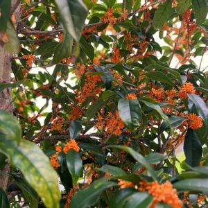 『金木犀🧡開花宣言』 蕾の中に一輪開花しています✨✨ モクセイ科 モクセイ属 日本三大芳香木🌲のひとつ 沈丁花💗 クチナシ🤍 金木犀🧡