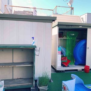 夏のお片づけしました。 たくさん遊んだプールや浮輪、水鉄砲🔫洗って干して〜 空気抜いて、来年までサヨナラ👋 秋の準備します。 プールの代わりは何が楽しめるのか? 一番上のお兄ちゃんは公園の方が良いもんなぁ😏 屋上でご飯食べたりかな? 小さな滑り台で遊ぶのはおチビのふたりかな😙 ブランコとジャングルジムのセットおいたら楽しいかな😍 チョット色々考えよう🧐