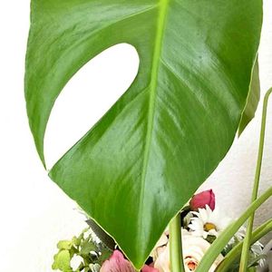 モンステラ 春に株を整理して植え直してから数ヶ月… 7枚目にしてやっと葉が割れてくれました(*^^*) 端っこが切れずに糸のように細く繋がっています(^o^;)
