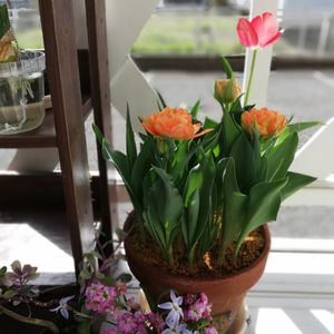 チューリップが 咲き始めました チューリップも、儚いですね わりとすぐに散ってしまう ベランダで、毎日 楽しみたいです