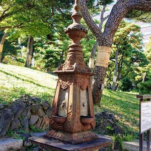 先日の日比谷公園⛲ 明治36年に設置された水飲み器🚰 鋳鉄製です👍重厚な造りで今でも形を留めています👌流石に水は飲めませんが💦 当時は、馬や牛も飲めるよう水を受けるお皿が付いたような形です🐴