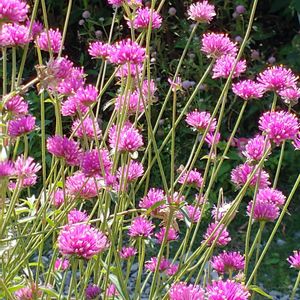 千日紅 ファイアーワークス 去年苗を10㌢ほどに刈り込んでたら 結構咲くんですねぇ〜 タネが飛んだのか、アチコチで咲いて、暑さ負けてお水やるのが精一杯 雑草元気に成長中です 涼しくならないと手を出す元気がない👵ですねぇ🥴