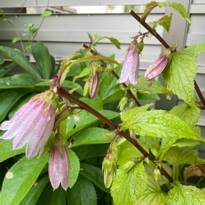 カンパニュラ 竹島 (ホタルブクロ ) 昨年苗をお迎えし、今年初開花しました😊 タグには、はっきり竹島 白と書かれていますが、咲いてみるとどう見てもピンク色😳 私には,嬉しい誤算💓 カインズペチュニア定点観測モニター、みどりのまとめにて、毎週水曜日更新中‼️
