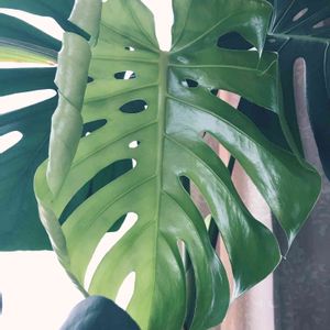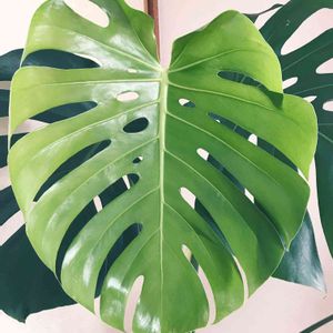 無事に開いたーー✨😆 この若い葉の色好き❤ 15cm位の切れ込みの少ないモンステラが1年前で35cm級の葉っぱに成長する様に… ホントにモンスターだわー