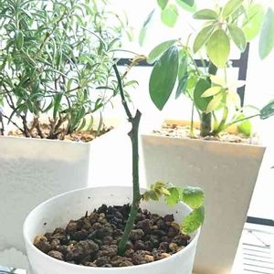 ガジュマルさん、3月末くらいから一斉に葉っぱが出てきた! 幹の部分も前に比べて少しぷっくり感が戻ったような…?