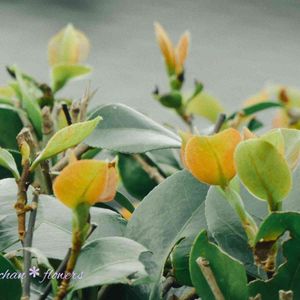 「山茶花の新しい葉🌿」 大空に向かって 伸びて…