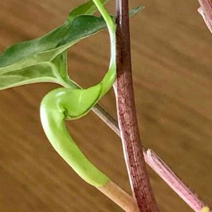 ちびっ子モンステラの気根がのびのび〜っとのび放題な状態な今日この頃です😂😂 様子見していた結果、この手前の気根は受け皿まで到着しちゃいました😳❗️ 水の場所が分かってるのかな?🤔 数ヶ月前に気根を全てカットしたのですが、次はどうしようか悩み中🤔 皆さんは「気根」はカットしますか?それともそのままにしてますか??
