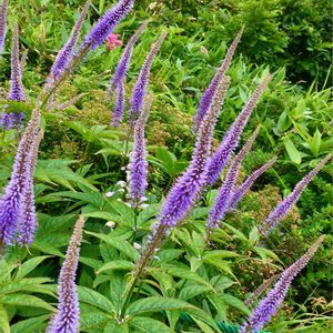 シュッ↗️と伸びた💜の穂先が美しい お花…涼風にたなびいていました。 *クガイソウ*(九蓋草) 数段に輪生する葉を重ねたフタに見立てて ついた花名