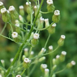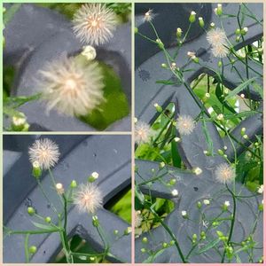 一つ前に出した種とそっくりだけど違う、 大きなのは、2メートル超えで今わっさわっさとほうき状に目立たない花さかせ、種振りまいてます😆 🌱ヒメムカシヨモギ。キク科ムカシヨモギ属越年草、🌱北アメリカ原産 明治時代初期に渡来 🌱茎に荒い毛があるが、全体に毛が少ない、花には、白い舌状花がある。(花びら状の物) 🌱更に毛の無い、ケナシヒメムカシヨモギがある。 😆こちらには、花びらあるなんて思いもしませんでした、肉眼でではわからん!あの大きな雑草にヒメとついてるなんて、、花びらあるしね😆