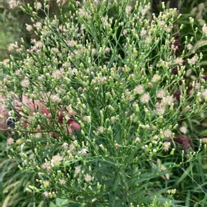 庭の雑草🌱🌱 ヒメムカシヨモギ🤍🤍 草〜!庭にあってはいけないタイプですが、一本だけ残しておいたのが咲きました♡ 細かすぎて上手く🤳撮れてませんが意外にかわいいんです〜👵🤗