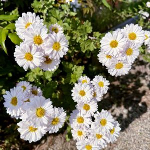 庭のナツシロギク🌼 かたまって咲いてて可愛い♡ 今年はピンクの菊も長持ちして咲いてくれました🌸