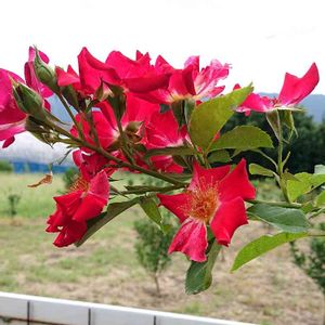 🌹台風のさなかツルプリンセスドゥモナコ風に揺れながら咲いています。