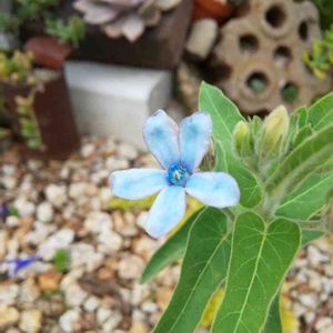 こぼれ種のブルースターがお花を咲かせてました✨💙 綿毛の種だからお母さんとは離れてます😆 お母さんが3、4年目で株元が老化してきたから子どもと入れ換えたいなぁと思ってますが移植が苦手な花らしく💦しかも砂利下のカチコチ土から生えてるので断念しそのままこの場所で頑張ってもらおうかな🎵