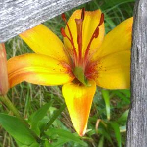 きょう☔ 植物園で🎵 柵のむこうから こんにちは(*゚∀゚*) 黄色い花びらに 赤いシベ 珍しいですよね✨