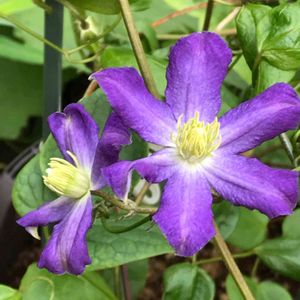 雨の中☔️お庭へほろほろと… クレマチス シルビ ガゼボに咲いていました(´∀`) すごーく花もちが良い品種だと思います