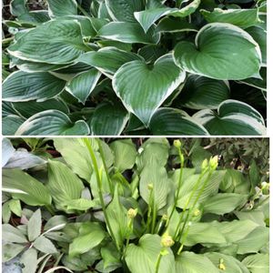 おはようございます😊 寒くて冷たい雨の日が続いていましたが今朝は明るい曇り空です。 晴れるといいなぁ☀️どうかなぁ😅 まだ春が残っている庭を片付けなくちゃね。 梅雨入り間近、いや感覚的にはもう入っているよね?☂️ 今日から6月❣️ 今月も元気にいきましょう😄 ホスタたちがモリモリ元気です✨ もう古い株ばかりなので名前も定かではないのですが、花が咲いているのはオオバギボウシなはず。 あとハルシオンは合ってるかな。。😅