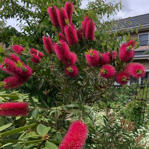ブラシの木(カリステモン)💕 やっと咲いて来た〜💖💖💖 真っ赤よりはピンク系 名前は分かりません💦💦💦
