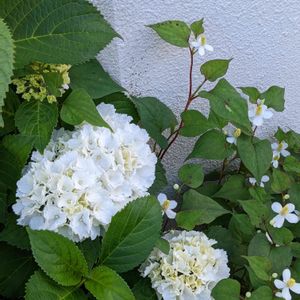 アジサイ、ガクアジサイなど アパート敷地内の花壇にて。 2022年5月26日撮影