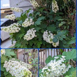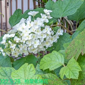 柏葉紫陽花が咲き始めましたね🥹 もうスグ梅雨……💦 バス停留所そば店舗前の花壇。 2022年6月1日撮影