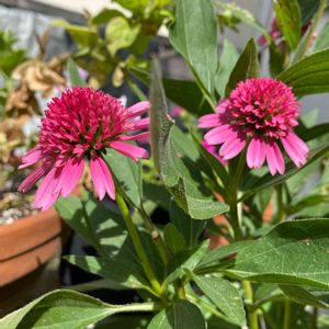 エキナセア デリシャスキャンディ♥️🌸 軒下に移動したけれど 風が強いとダメで 長雨のせいで葉っぱに 黒いシミが沢山出てきました😥