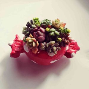 ダイソーのオーブンねんどで作った鉢に寄せ植えしてみました