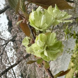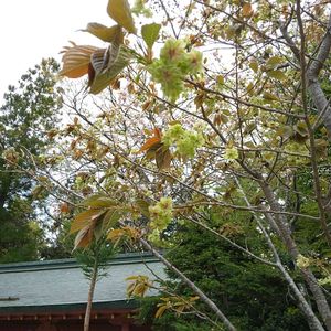 今年の4月20日に出掛け先の神社で撮った 「御衣黄桜」
